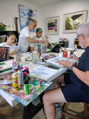 Los talleres de arte constituyen espacios fundamentales para el desarrollo creativo, técnico y sensible de las personas, ya que promueven el aprendizaje colectivo, la experimentación y la construcción de una voz propia. En este contexto, la acuarela se destaca como una técnica especialmente valiosa por su capacidad de capturar la luz, la transparencia y la espontaneidad del gesto, exigiendo al mismo tiempo precisión, sensibilidad y dominio del medio. El arquitecto y artista Roberto Angulo es el tallerista encargado y en cada sesión demuestra cómo la acuarela puede convertirse en un lenguaje sofisticado que conecta la formación técnica con una profunda exploración estética del paisaje, la atmósfera y la memoria visual. Así, los talleres que integran esta técnica no solo fortalecen habilidades plásticas, sino que también fomentan procesos de observación, disciplina y expresión personal.